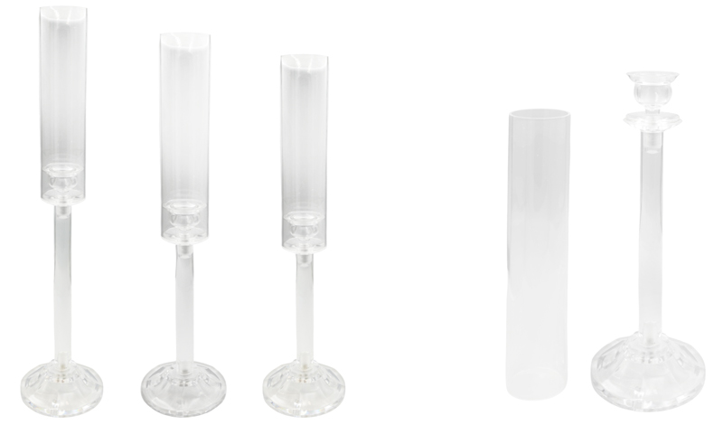 Διαστάσεις: 10cm η βάση. 60cm/55cm/50cm ύψος. 5cm διάμετρος βάσης κεριού. Τρύπα για το κερί 2.2 cm