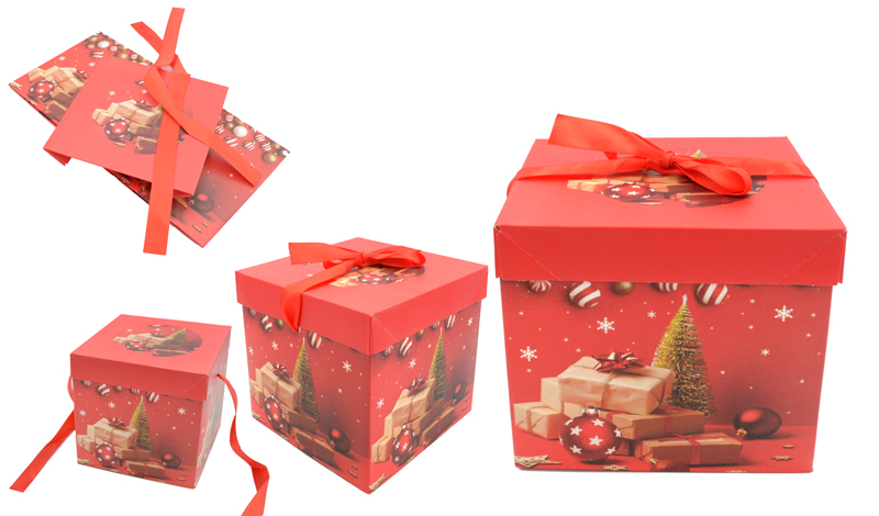 ΚΟΥΤΙ ΧΑΡΤΙΝΟ ΧΡΙΣΤΟΥΓΕΝΝΙΑΤΙΚO ΚΥΒΟΣ ΜΕ ΚΟΡΔΕΛΑΚI 15cm 0402305