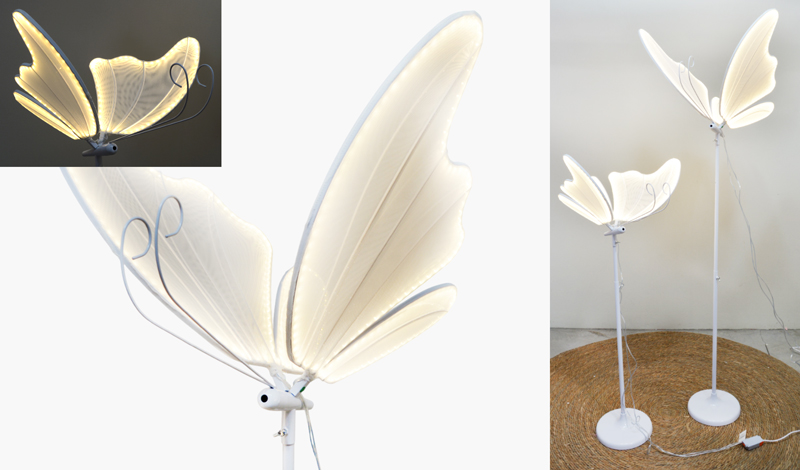 Διαστάσεις: μικρή πεταλούδα 60cm x 50cm και μεγάλη 70cm x 60cm περίπου. 90-160cm ύψος αυξομειούμενο του σταντ. Περιέχει και καλώδιο για μπρίζα.